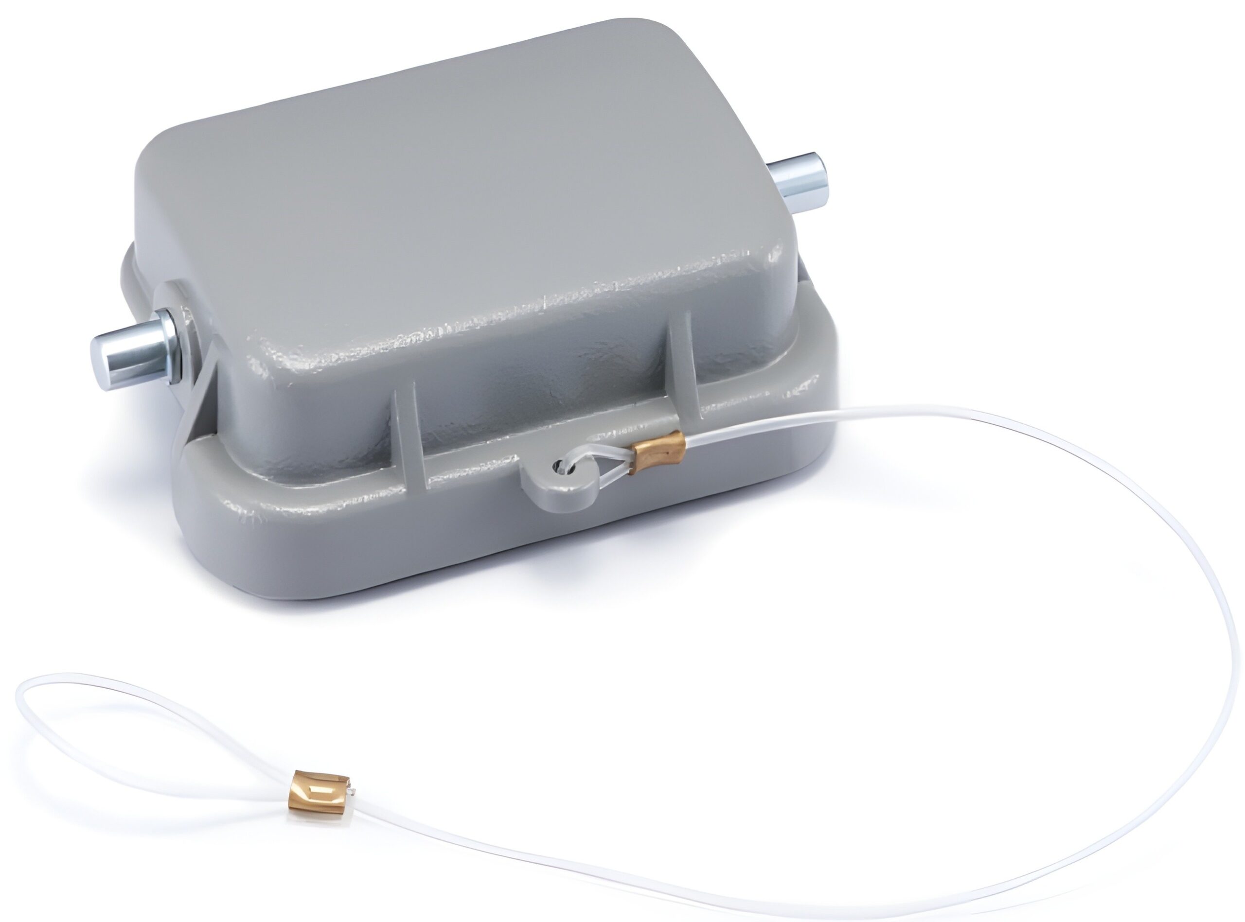 Защитная крышка металлическая для прямоугольного промышленного разъема типоразмера 6B, 2 фиксатора, крепление — «петля»