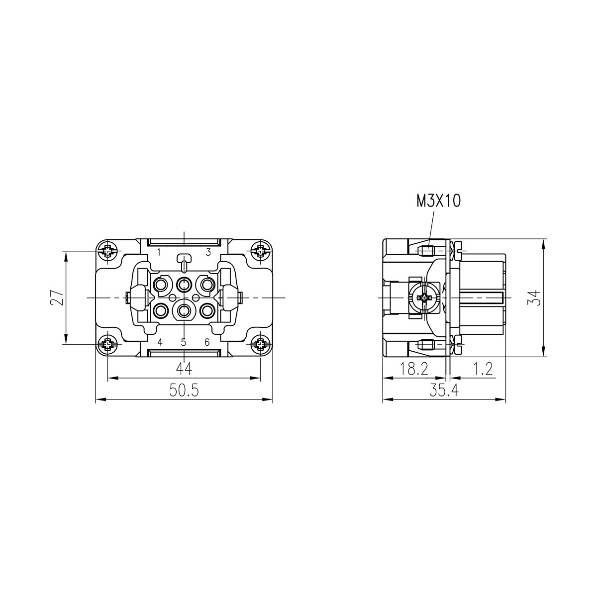 Контактная вставка прямоугольного промышленного разъема HE-006-FS (09330062716)