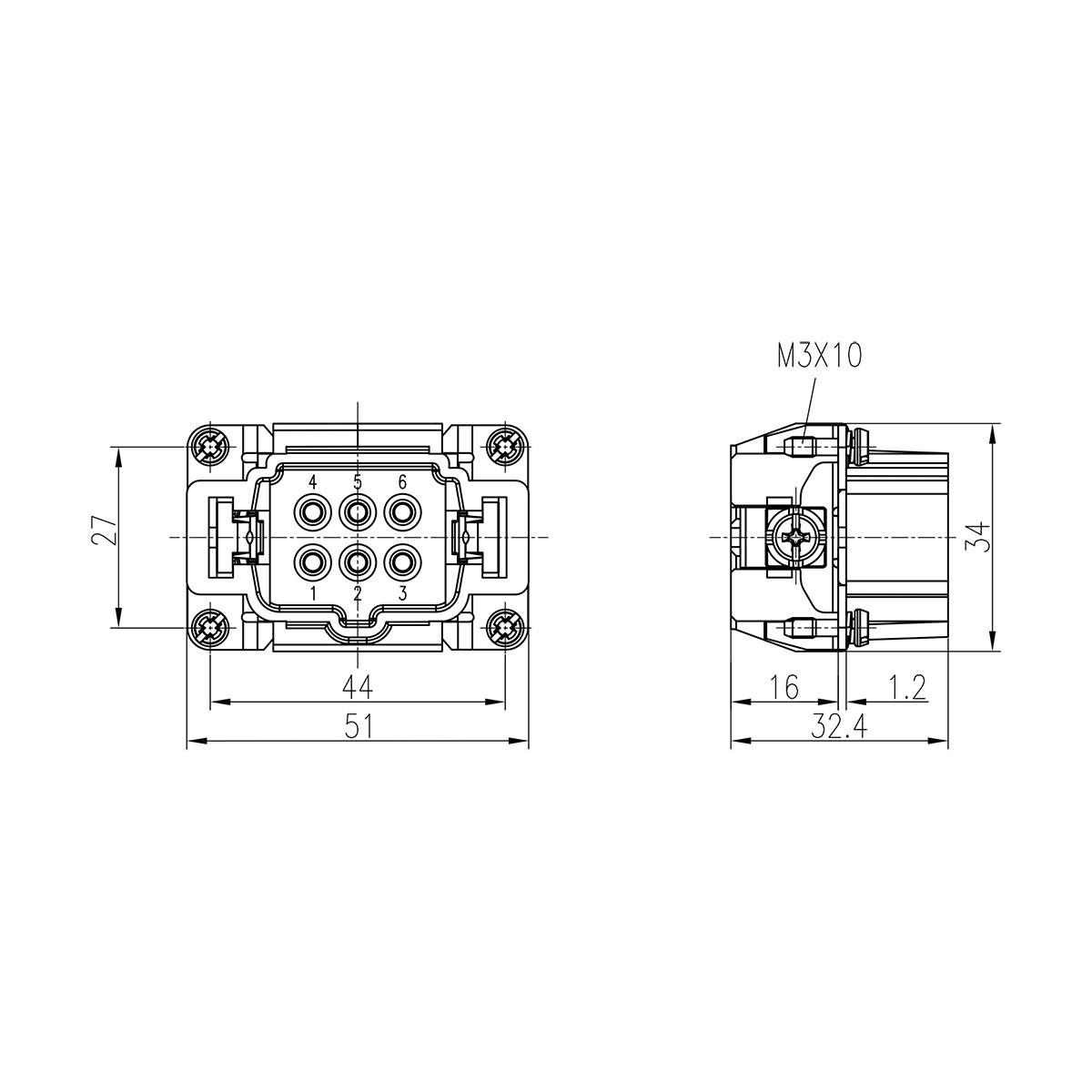 Контактная вставка прямоугольного промышленного разъема HE-006-M (09330062601)