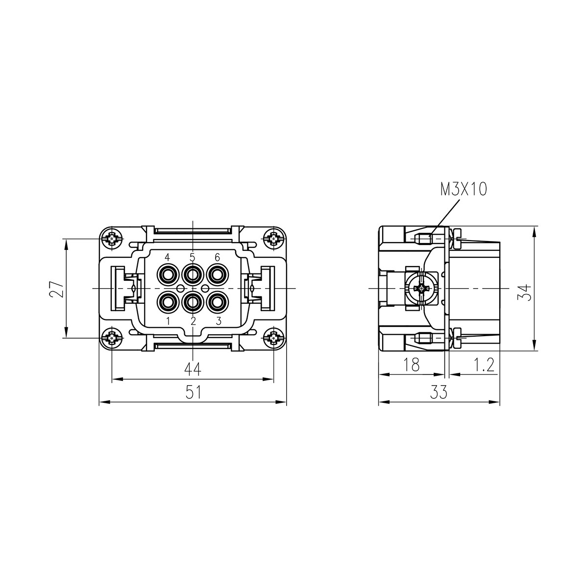 Контактная вставка прямоугольного промышленного разъема HE-006-MC (09330062602)