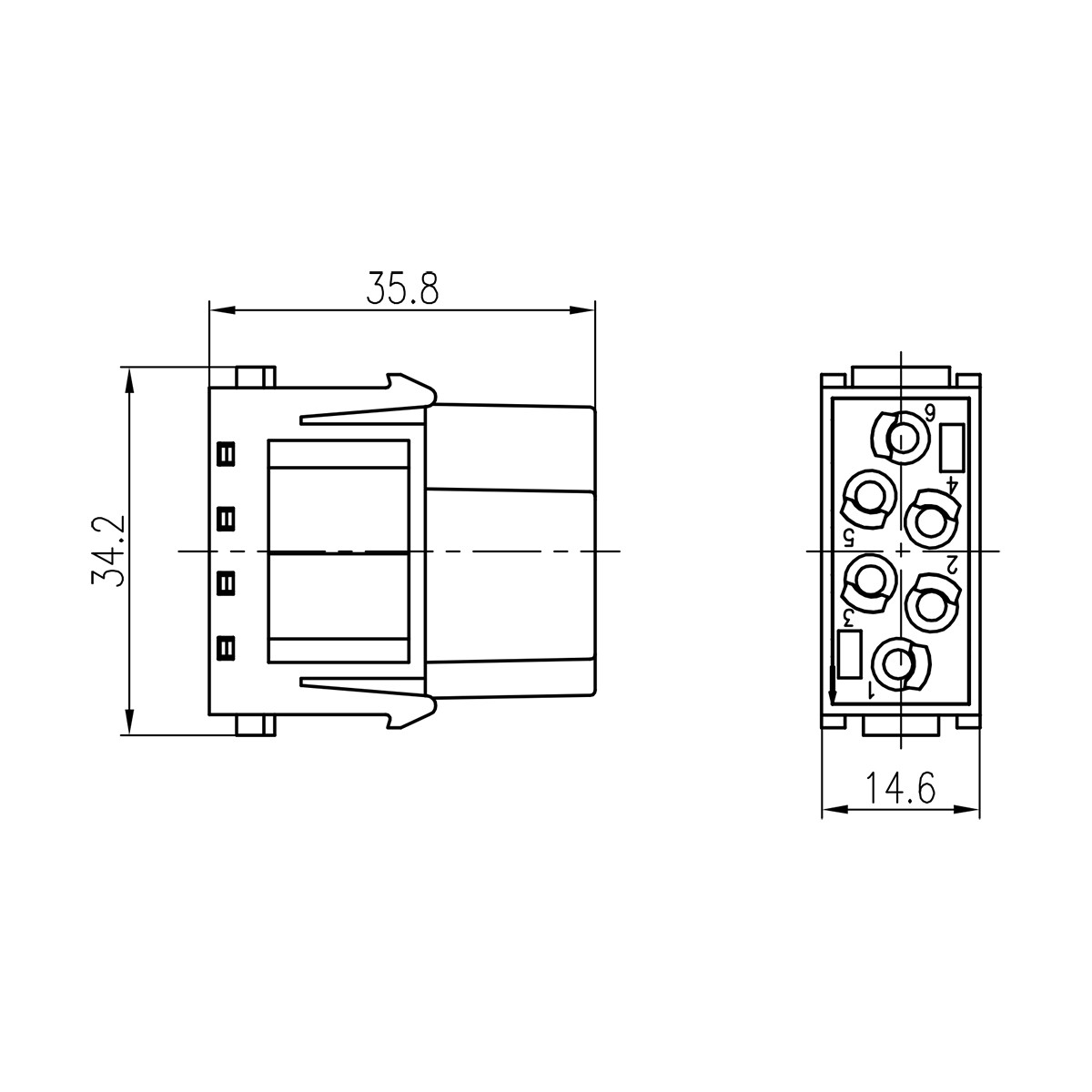 Модульная контактная вставка прямоугольного промышленного разъема HME-006-FC (09140063101)